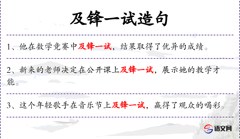 - 及锋一试:seize the opportunity, take the stage
