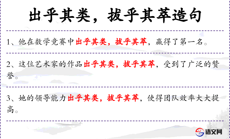 - 出乎其类:超出同类,形容非常优秀。