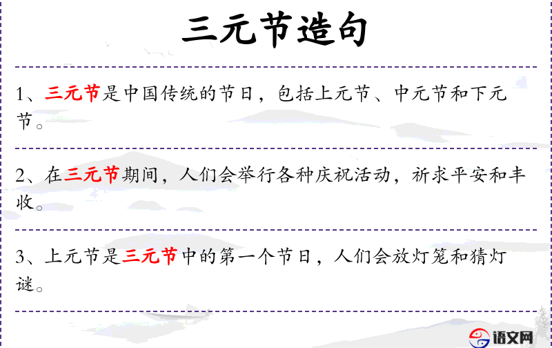 1. 【三元节】 - 上元节﹑中元节﹑下元节的合称。