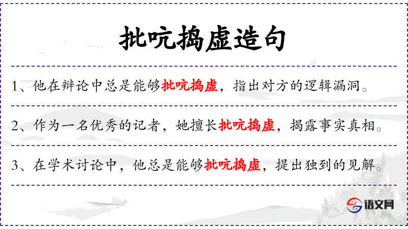 - 批吭捣虚:这个词组可能是指在讨论中指出问题的不实之处或虚浮的部分,帮助大家聚焦于实质问题。