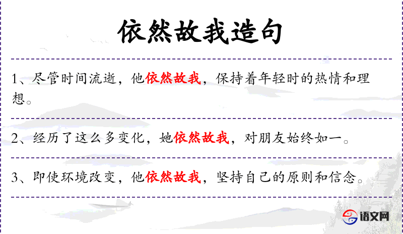 2. 【依然故我】 形容自己一切跟从前一样,没有变得更好。