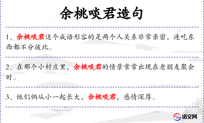 - 余桃啖君:一个成语,源自《左传·宣公十五年》,形容朋友之间亲密无间,不分你我。