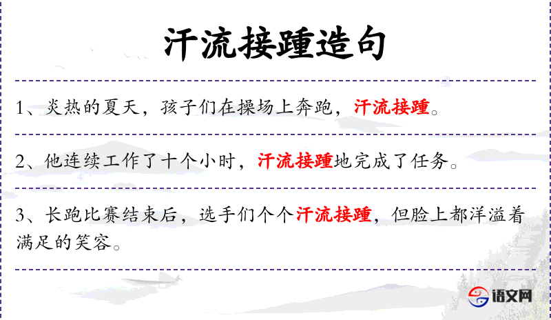 2. 【汗流接踵】 - 汗出得多,流到脚跟。常形容极端恐惧或惭愧。