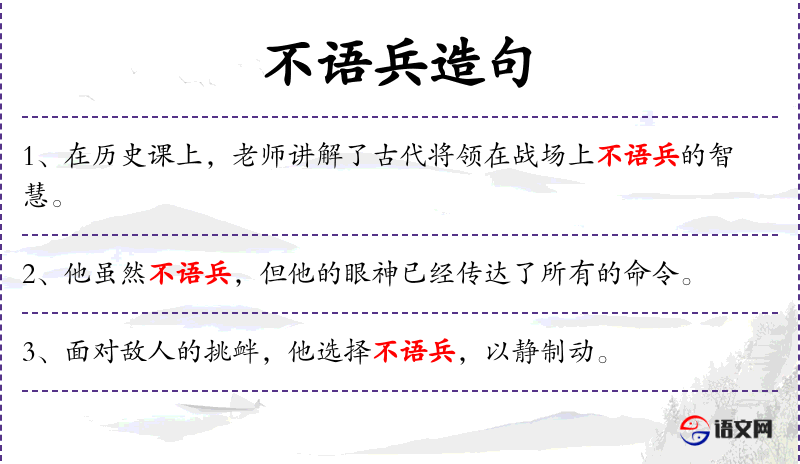 1. 【不语兵】 隐语。指江河流水。因可用以淹没敌人,故云。