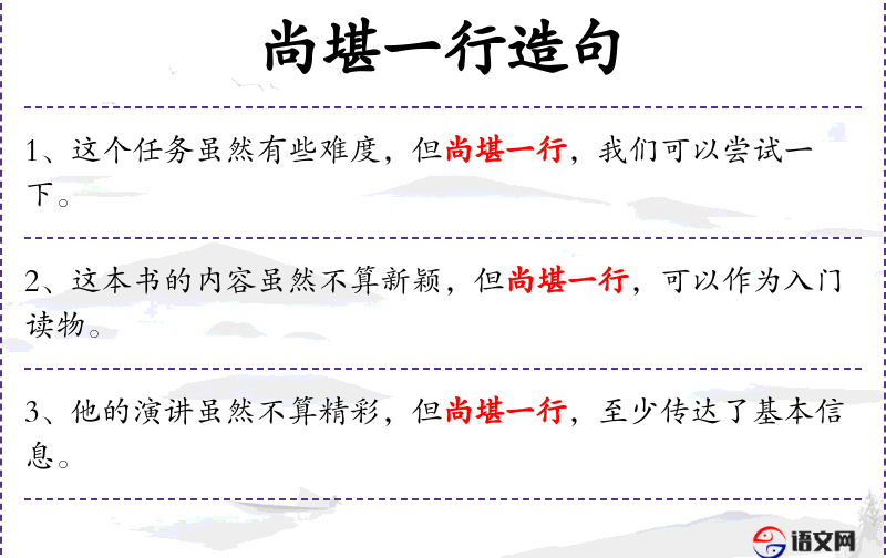 - 尚堪一行 → 尚可、勉强可以
