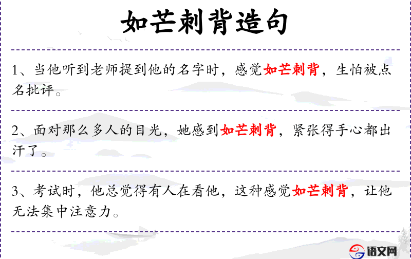 - 日文:使用了“背中がとげに刺されるような感じ”来表达“如芒刺背”,同样形象地描述了紧张感。
