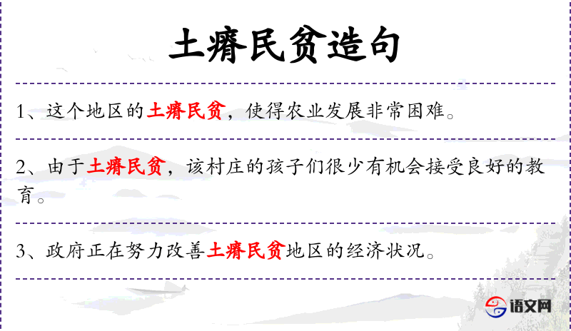 - 土瘠民贫:形容土地贫瘠,人民贫困。
