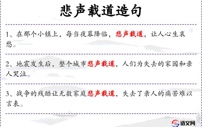 - 使用“悲声载道”这样的成语增强了表达的情感深度和文化内涵。