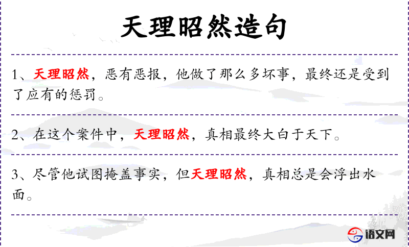 - 天理昭然:意味着天道或正义是显而易见的,不可违背的。