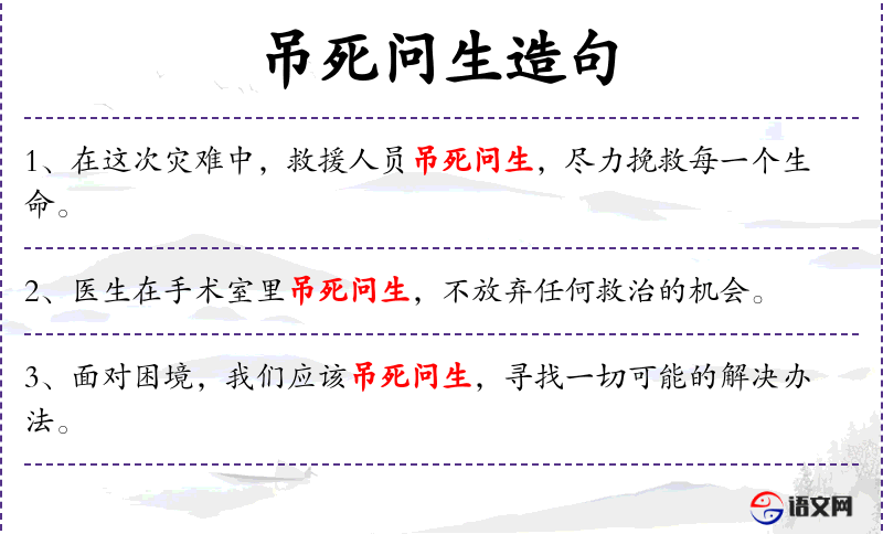 - 吊死问生:这个短语在现代汉语中不常用,可能是误用或打字错误,通常应为“吊死问生”或“吊死问生”。