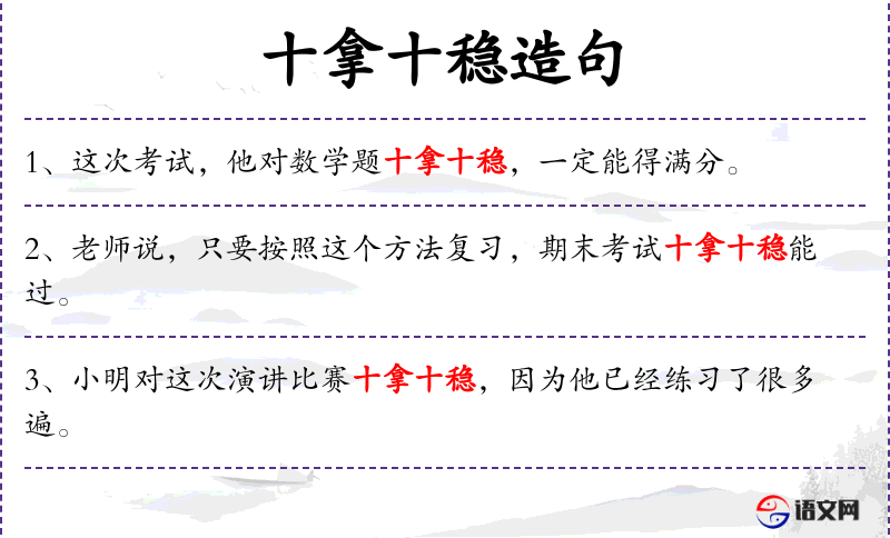 十拿十稳:这个成语在文化中常用,表示非常有把握,类似于英文中的“a sure thing”。它反映了人对于确定性和稳定性的重视。