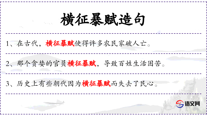 5. 【横征暴赋】 - 滥征捐税,强行搜刮民财。
