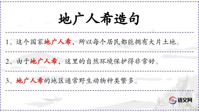 - 地广人希:形容地域广阔,人口稀少。