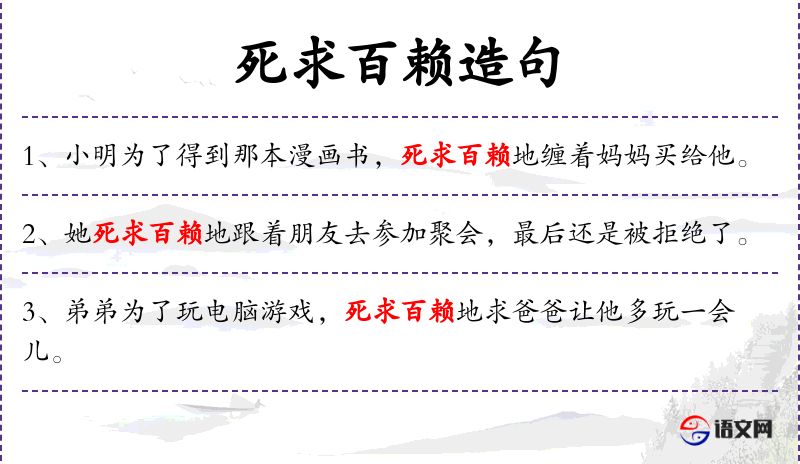 3. 【死求百赖】 - 形容纠缠不休。同“死乞白赖”。