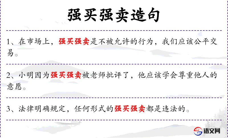 - 强买强卖:指在交易中强迫对方接受不公平的条件,是一种不道德的商业行为。