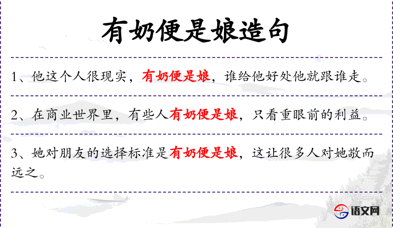 2. 【有奶便是娘】 - 比喻贪利忘义,谁给好处就投靠谁。