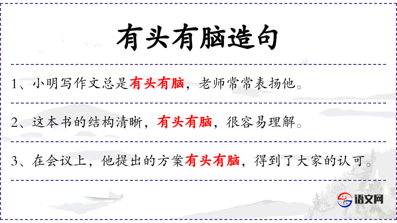 4. 【有头有脑】 - 比喻有头绪,有条理。