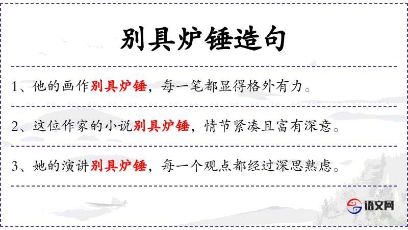 “别具炉锤”这个成语源自**传统文化,比喻技艺高超,有独特的风格。在现代汉语中,这个成语常用来赞扬某人在某一领域有独到的见解或技巧。
