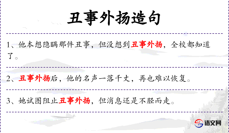 2. 【丑事外扬】 - 不光彩、见不得人的事在外面到处传扬。