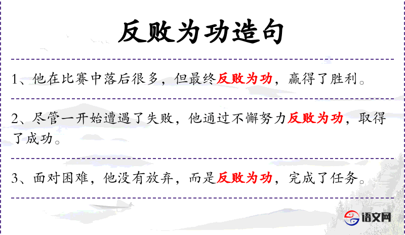 - 谓语:反败为功,大获成功