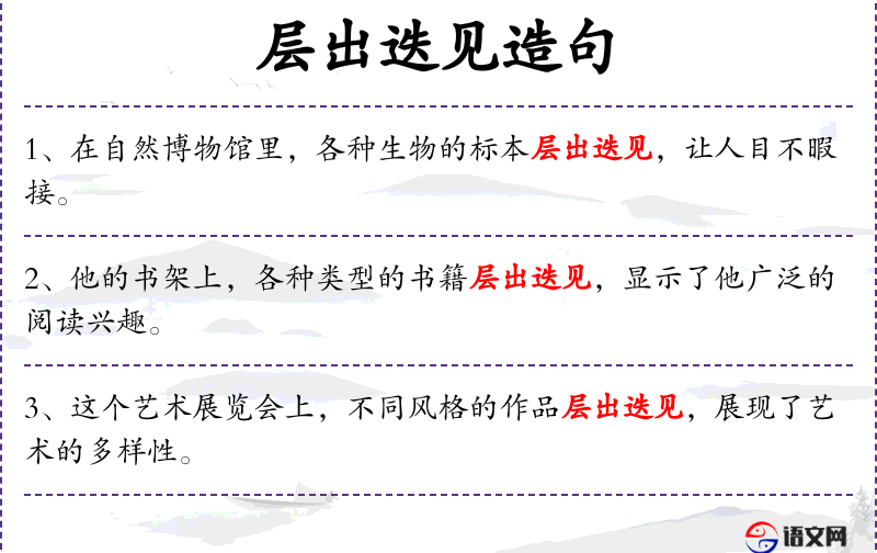 - 层出迭见:成语,形容事物或现象不断出现,多而繁复。