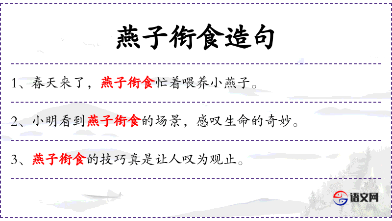 4. 【燕子衔食】 - 比喻育子之艰辛。
