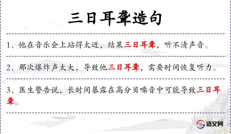 1. 【三日耳聋】 - 形容受到强烈的震动。