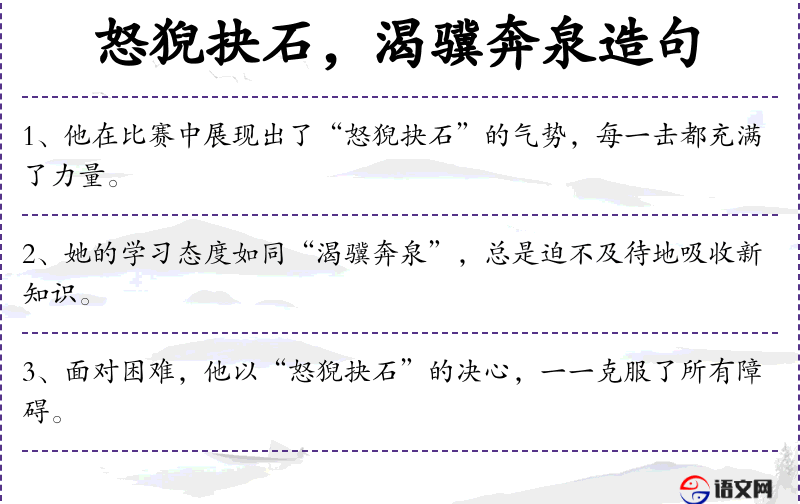 - 怒猊抉石:这个成语源自**古代,用来形容人的行为或情感非常激烈。了解这个成语的文化背景有助于更好地理解句子的含义。