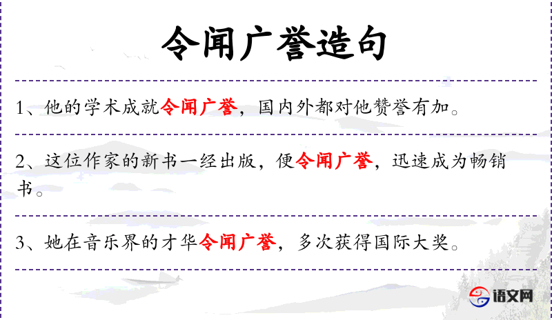 - 闻广誉:名词短语,指名声广泛且受到赞誉。