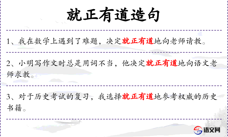 1. 【就正有道】 向有学问和有道德的人请求指正。