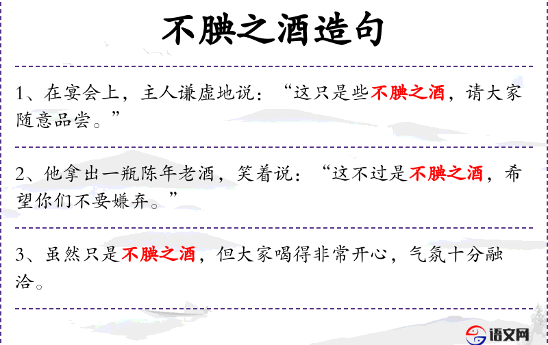 句子中的“不腆之酒”体现了文化中的谦逊和礼貌。在传统文化中,主人常常会谦虚地表示自己准备的东西不够好,即使实际上已经很用心。这种表达方式体现了对客人的尊重和希望客人能够满意。