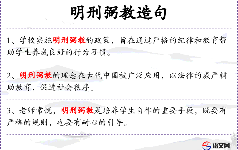 - 明刑弼教:指用法律的威严来辅助教育,强调法律与教育的结合。