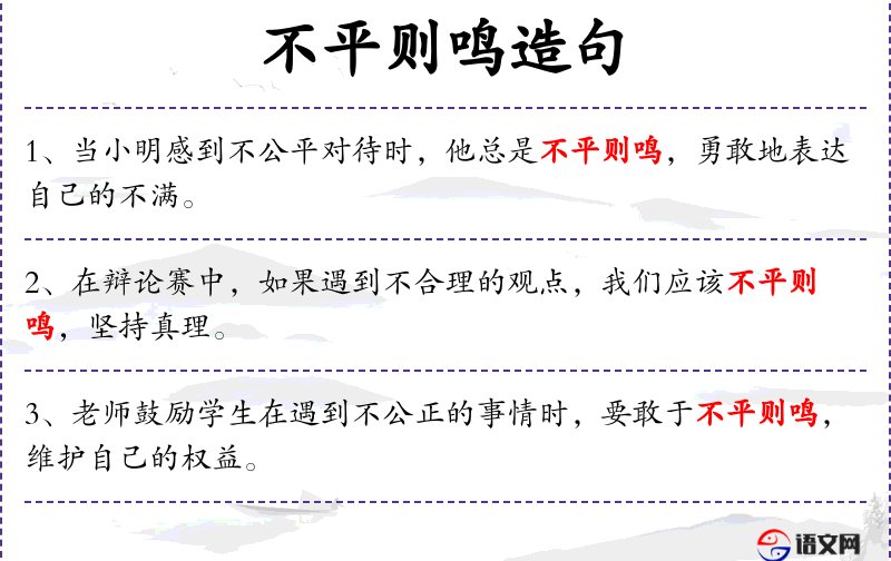 1. 【不平则鸣】 - 鸣:发出声音,指有所抒发或表示。指受到委曲和压迫就要发出不满和反抗的呼声。