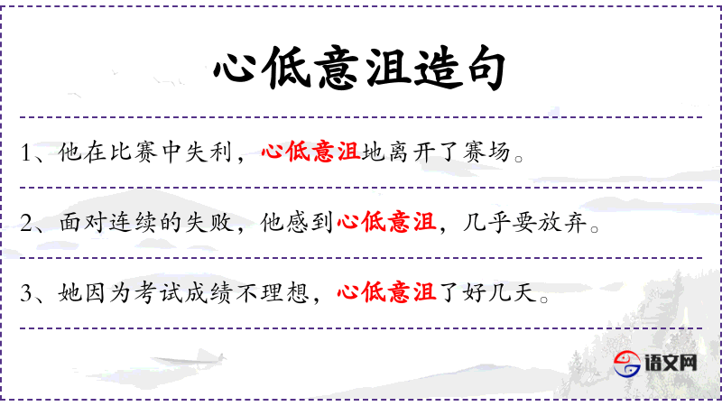 - 他面对连续的失败,感到心低意沮,几乎要放弃。