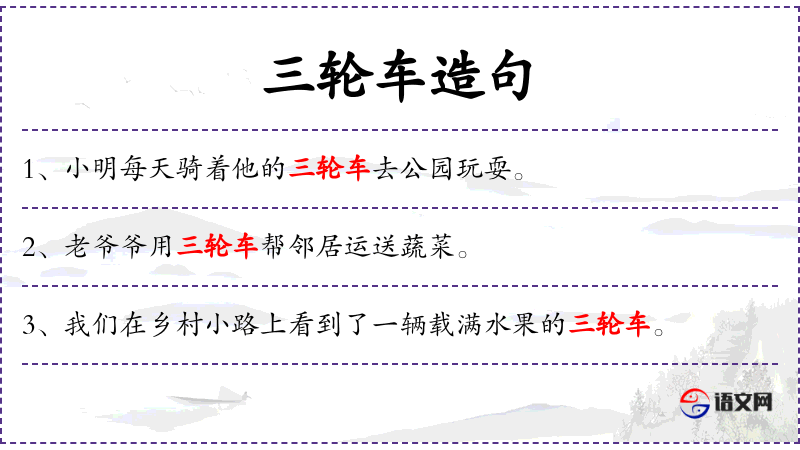 1. 【三轮车】 - 一种交通工具,有三个轮子,装置车厢或平板,骑在上面用脚蹬动轮盘带动车轮转动前进,用来载人或装货。也叫三轮儿。