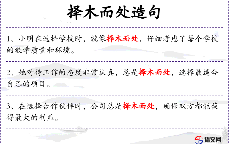 - 择木而处:成语,比喻选择合适的环境或条件。