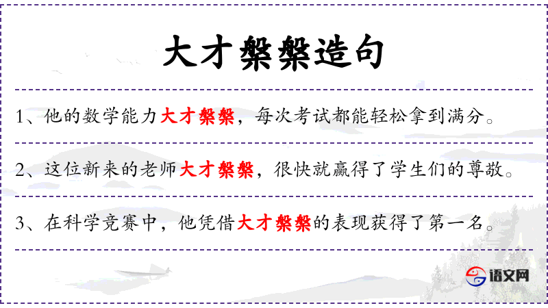 - 大才槃槃:形容词,意指非常有才华。