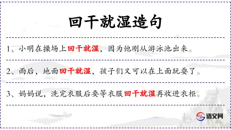 - 谓语:回干就湿