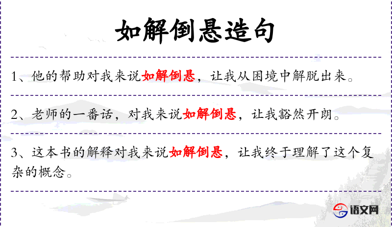 句子:“[她的建议对我来说如解倒悬,让我找到了解决问题的方法。]”