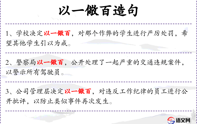 - 成语:以一儆百,体现了**传统文化中通过典型案例来教育大众的思想。