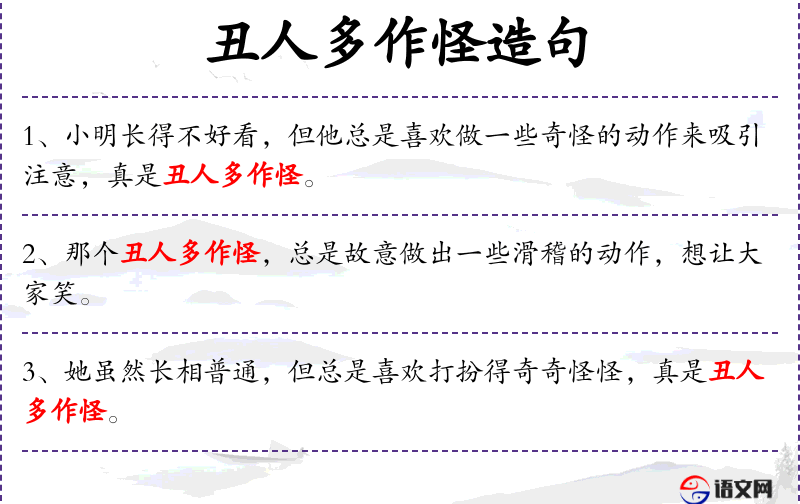 1. 【丑人多作怪】 - 长相丑陋的人经常做出一些离奇古怪的事来为难别人。