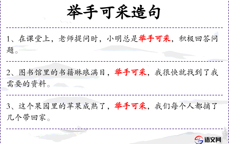 - “举手可采”这个成语源自古代,形容事情容易做到。