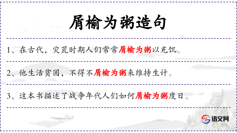 句子:“学生们通过历史课了解到古人屑榆为粥的生活状态。”