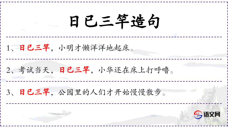 - 日已三竿:这是一个成语,意思是太阳已经升得很高,通常用来形容时间已经不早了。