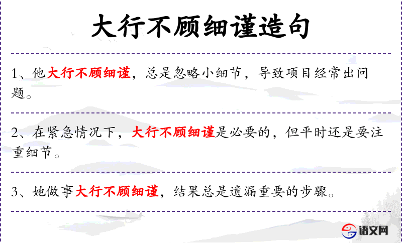 - 大行不顾细谨:形容做事粗心大意,不注重细节。