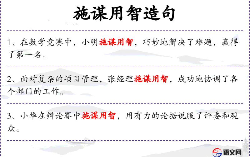 4. 【施谋用智】 智:智慧,计谋。运用策略计谋。