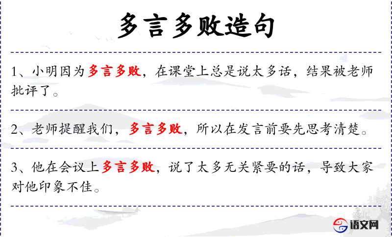 - 英文:强调了“多言多败”的概念,并指出我们应该在发言时力求简洁。