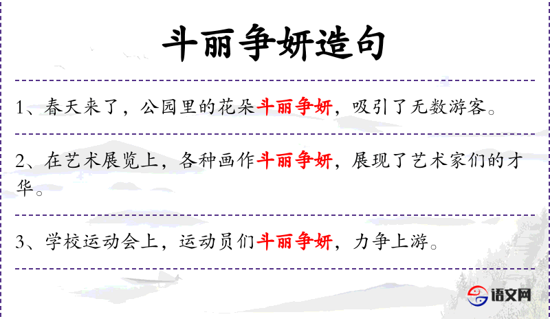 - 谓语:“斗丽争妍”
