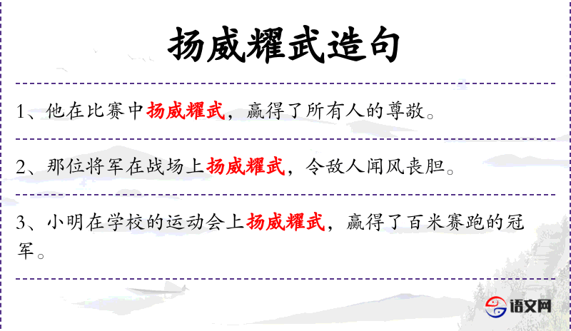 - 谓语:扬威耀武