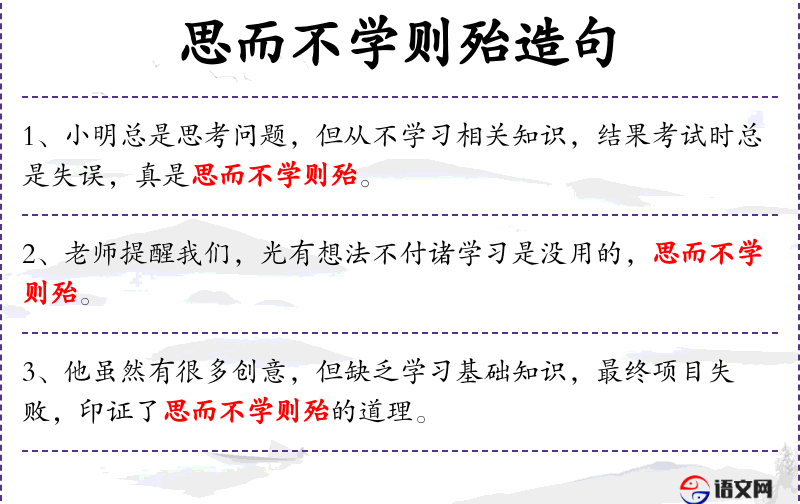 - 思而不学则殆:成语,意思是只思考不学*就会陷入困境